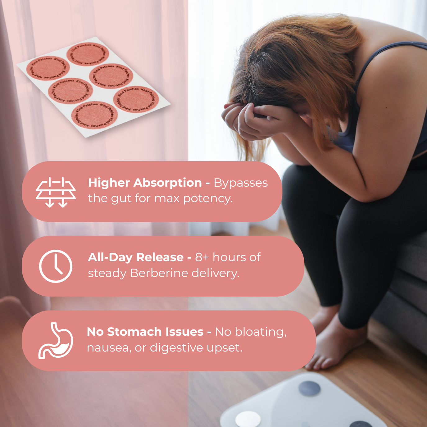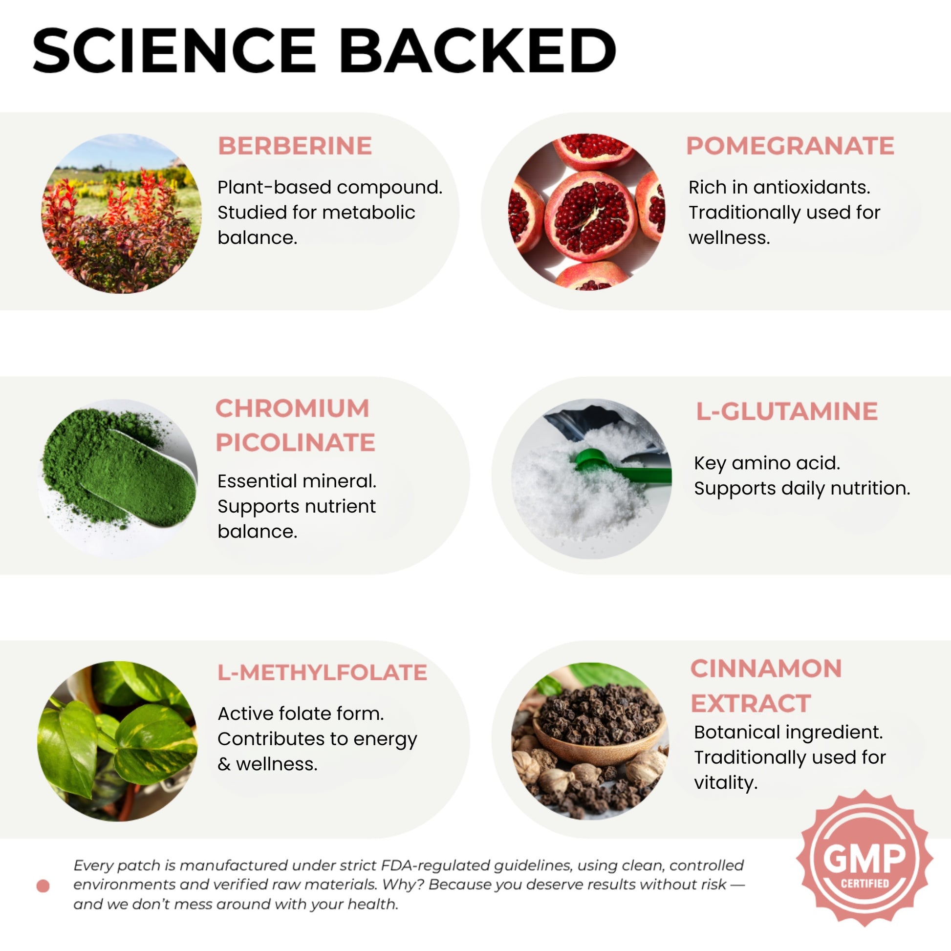 Each patch contains a botanical blend of Berberine, Pomegranate, Cinnamon, and L-Glutamine.